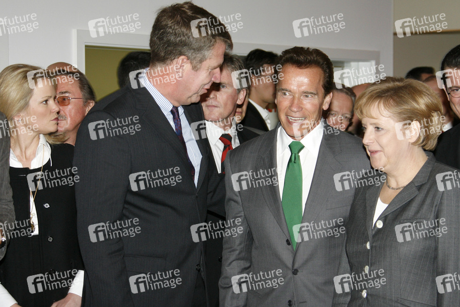 Eröffnungsrundgang von Bundeskanzlerin Merkel und Gouverneur Schwarzenegger auf der CeBIT 2009 (Centrum der Büro- und Informationstechnik), der weltgrößten Messe für Informations- und Computertechnik auf dem Messegelände in Hannover. Im Vodafone Pavillon