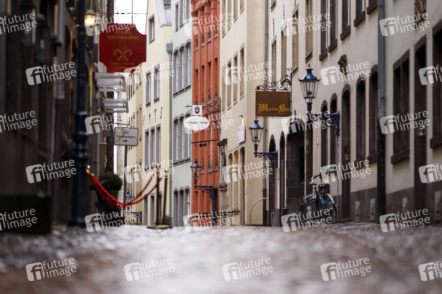 Der Lockdown aufgrund der Coronakrise trifft die Kneipen, Restaurants und Hotels in der Kölner Altstadt hart. Im Bild die menschenleere Lintgasse. (Themenbild, Symbolbild) Köln, 10.01.2021