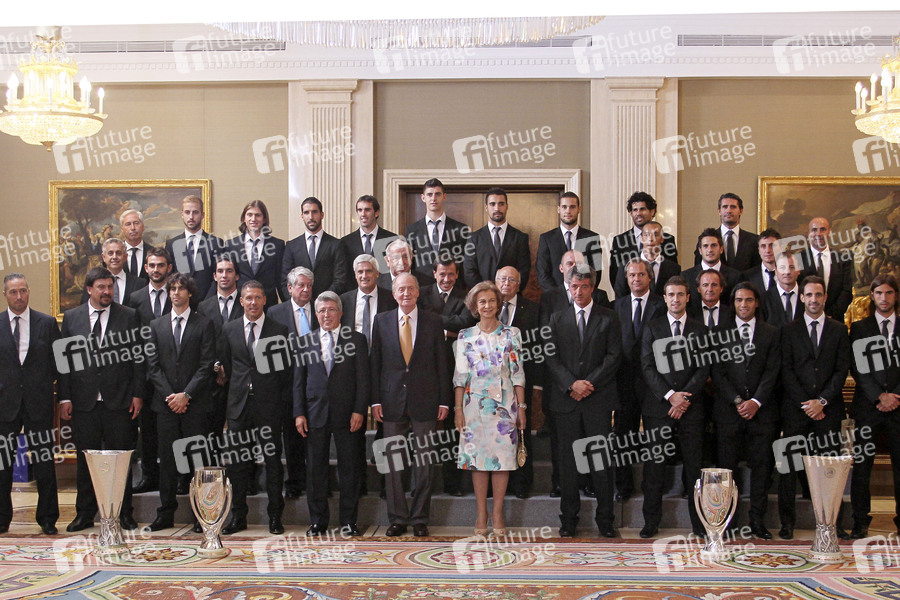 König Juan Carlos und Königin Sophia empfangen Spieler und Funktionäre von Atletio Madrid im Palacio de la Zarzuela, Madrid