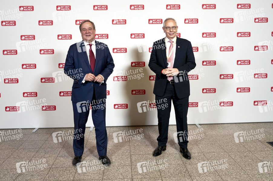 Armin Laschet und Michael Vassiliadis beim 7. Ordentlichen Gewerkschaftskongress der IG Bergbau, Chemie, Energie im Hannover Congress Centrum. Hannover, 27.10.2021