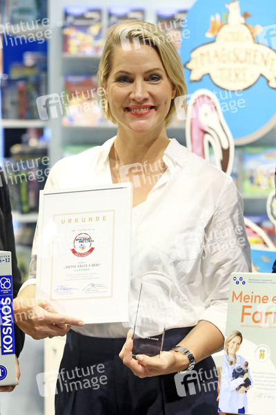Judith Rakers erhält der Deutschen Spielzeugpreis 2024 in der Kategorie 'Alles fürs Kinderherz' auf der 76. Frankfurter Buchmesse 2024 in der Messe Frankfurt. Frankfurt am Main, 16.10.2024