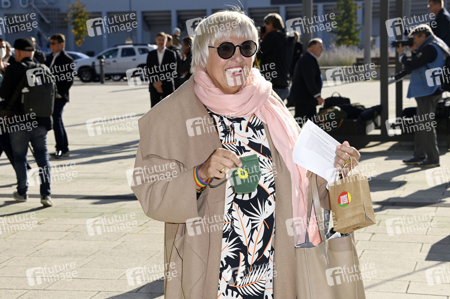 Claudia Roth bei der Ankunft zum Gespräch zwischen SPD, Bündnis 90/Die Grünen und FDP im CityCube Berlin. Berlin, 07.10.2021