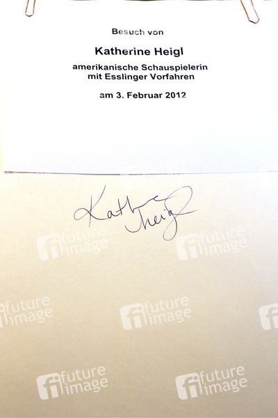 Katherine Heigls Unterschrift im Goldenen Buch der Stadt Esslingen