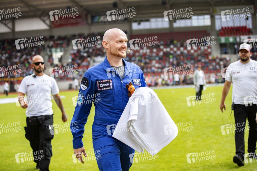 Alexander Gerst bei der DLR-Raumfahrt-Show vor 15.000 Schülerinnen und Schülern im Steigerwaldstadion. Erfurt, 07.06.2019