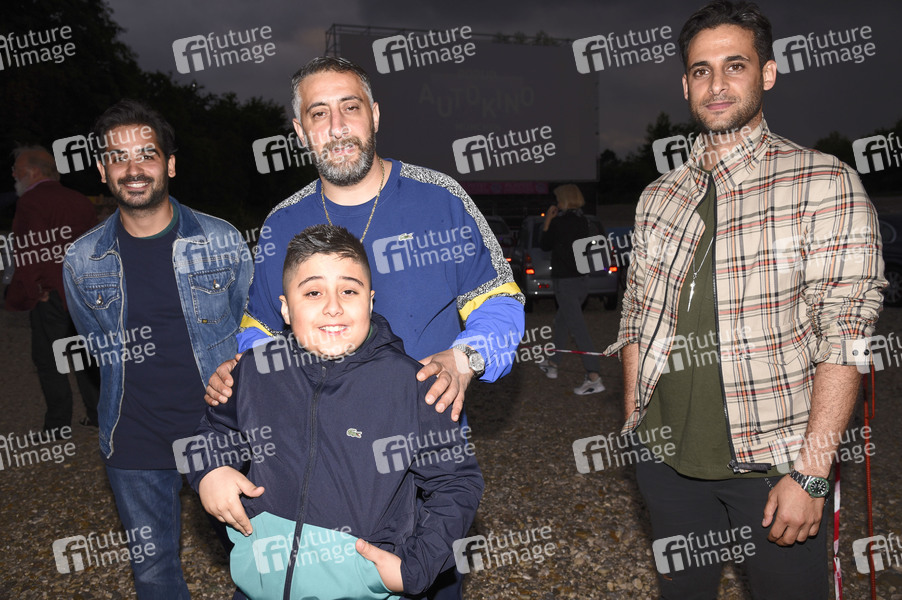 Tanju Bilir, Kida Khodr Ramadan mit Sohn Momo und Karim Günes bei der Weltpremiere des TV-Films 'In Berlin wächst kein Orangenbaum' beim Filmfest München Pop-Up im PopUp Autokino. München, 15.07.2020