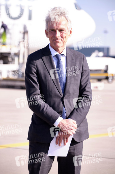 Ralf Teckentrup (CEO von Condor Flugdienst) und Bernd Althusmann (Niedersächsischer Minister für Wirtschaft) - Volkswagen empfängt Luftfracht mit 5 Million Schutzmasken und medizinische Hilfsmaterialien aus China auf dem Hannover Airport. Hannover, 26.04.2020
