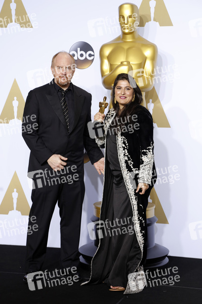 Louis C.K. und Sharmeen Obaid-Chinoy (Bester Dokumentar-Kurzfilm 'A Girl in the River: The Price of Forgiveness') im Presseraum der Oscar Verleihung 2016 / 88th Academy Awards im Loews Hollywood Hotel. Los Angeles, 28.02.2016