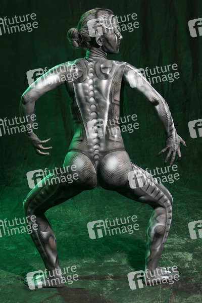 Bodypainting, Erotik, Frau, nackt, drinnen, weiblich, Monster, Außerirdische, Alien, Echse, Körperkunst, Kunst, Malerei, monochrom, erotic, woman, nude, indoor, female, monochrome, lizard, body art, body painting