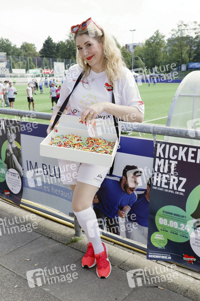 Sandra Quadfliieg beim Benefiz-Fußballspiel 'Kicken mit Herz' 2024 zu Gunsten des Herzzentrums des UKE im Stadion des SC Victoria. Hamburg, 08.09.2024
