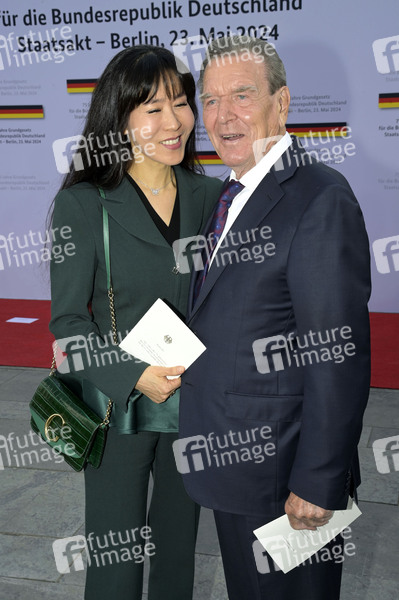 Gerhard Schröder mit Ehefrau So-yeon Schröder-Kim beim Staatsakt zu 75 Jahre Grundgesetz auf dem Forum zwischen Bundestag und Kanzleramt. Berlin, 23.05.2024