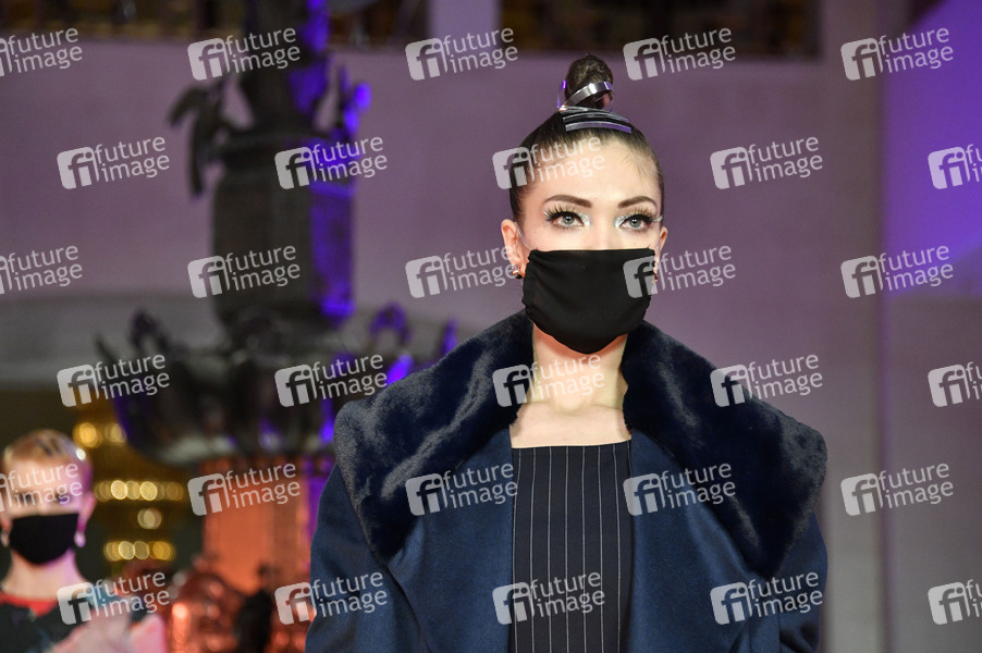 Model bei der Anja Gockel Fashion & Art Show 'Embraceland' im Rahmen der Berlin Fashion Week Autumn/Winter 2021/22 im Hotel Adlon. Berlin, 19.01.2021