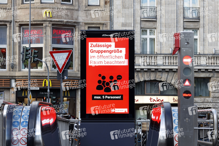 Köln ist weiterhin Corona-Risikogebiet: Inzidenzwert stieg am Samstag auf Inzidenzwert bei 193,9. Im Bild eine Kampagne der Stadt Köln, die Passanten am Kölner Dom auf die dort geltenden Corona-Regeln hinweist. (Themenbild, Symbolbild) Köln, 06.11.2020