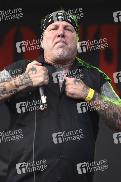 Roger Miret von Agnostic Front live beim Ruhrpott Rodeo Festival auf dem Freigelände am Flughafen Schwarze Heide. Hünxe, 02.07.2022