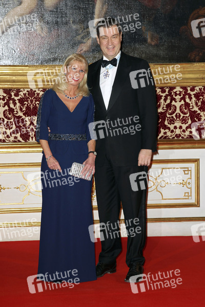 Markus Söder mit Ehefrau Karin Baumüller-Söder beim Neujahrsempfang des Bayerischen Ministerpräsidenten 2020 im Kaisersaal der Residenz. München, 10.01.2020