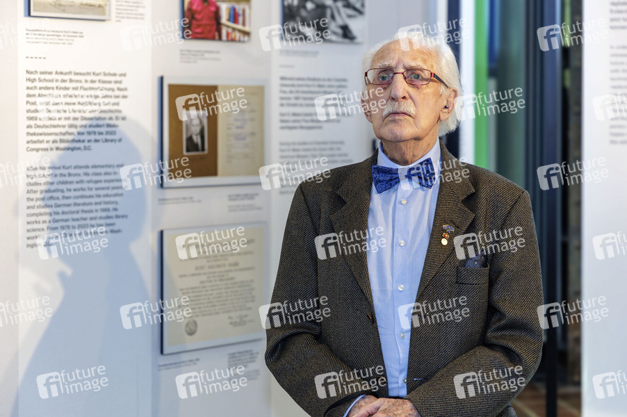 Leon Weintraub beim Rundgang der Ministerin für Kultur und Wissenschaft des Landes Nordrhein-Westfalen durch die Ausstellung HOLO-VOICES in Halle 8 auf dem UNESCO-Welterbe Zollverein. Essen, 05.03.2026