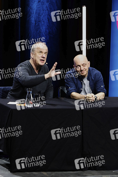 Hubertus Meyer-Burckhardt und Bernhard Hoecker bei der lit.Cologne 2024 Veranstaltung 'Denn sie wissen (noch) nicht, was sie tun' im E-Werk. Köln, 09.03.2024