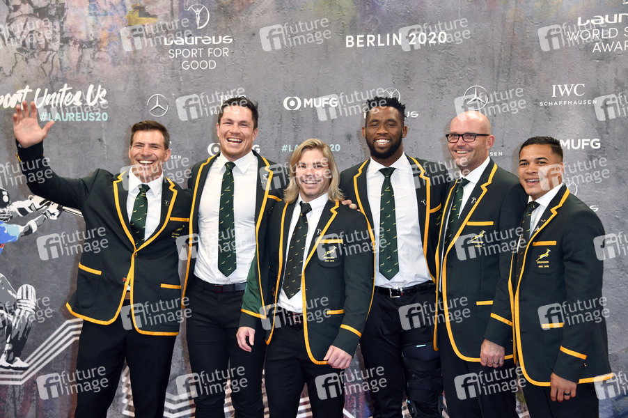 Mitglieder des südafrikanischen Rugby-Teams bei der Verleihung der Laureus Sport for Good Awards 2020 in der Verti Music Hall. Berlin, 17.02.2020