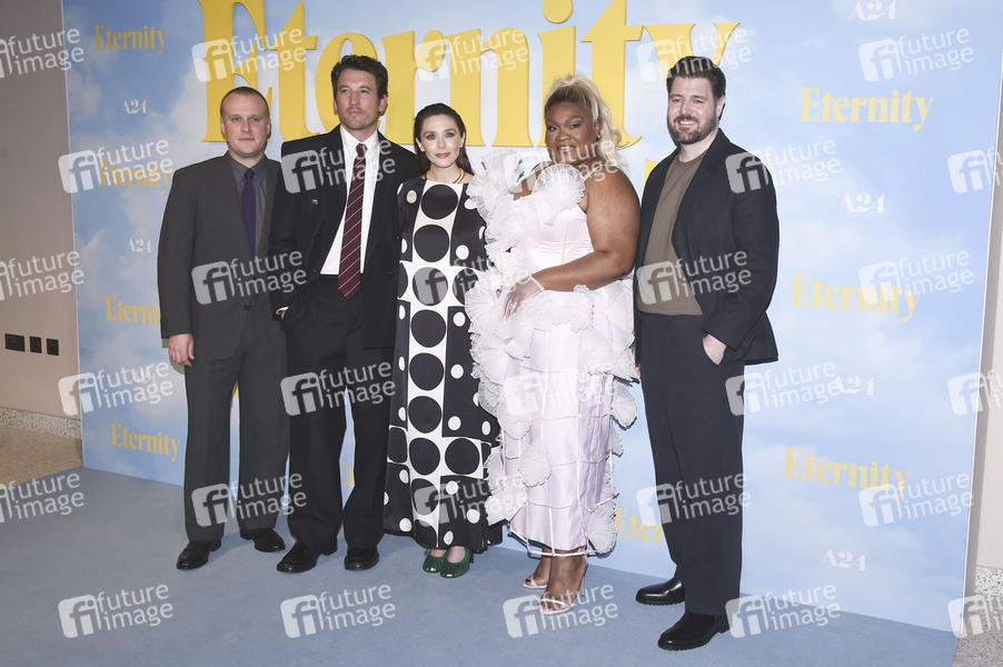 John Early, Miles Teller, Elizabeth Olsen, Da'Vine Joy Randolph und David Frayne bei der Premiere des Kinofilms 'Eternity' im Cinema in der Battersea Power Station. London, 17.11.2025