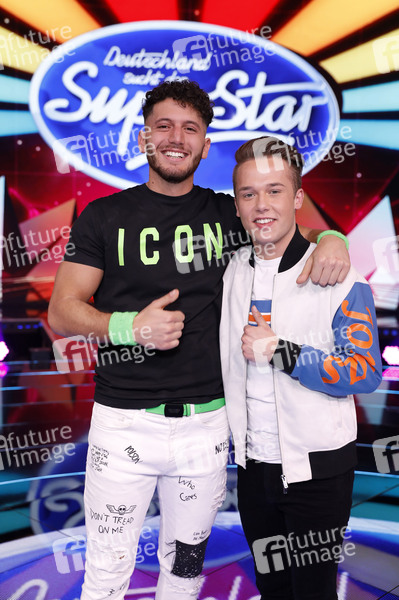 Momo Chahine und Jonas Weisser in der zweiten Live-Mottoshow der 16. Staffel der RTL-Castingshow 'Deutschland sucht den Superstar / DSDS 2019' im MMC Coloneum. Köln, 13.04.2019