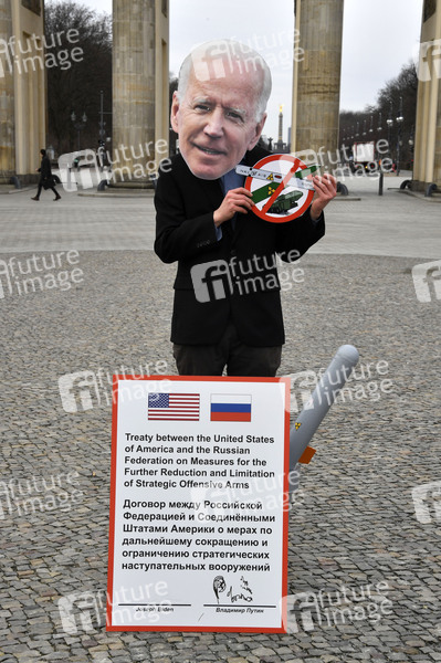Am 5. Februar 2021 wäre der New START-Vertrag zur Beschränkung der nuklearen Trägersysteme und Atomwaffensprengköpfe zwischen Russland und den USA ausgelaufen. Der neue US-Präsident Joseph Biden hat mit dem russischen Präsident Wladimir Putin vereinbart, das Abkommen um 5 Jahre verlängern zu wollen. Mit einem kleinen Straßentheater und einer Fotoaktion vor den Botschaften der beiden Länder und dem Brandenburger Tor stellen Aktivist*innen dar, wie Präsident Biden und Amtsinhaber Putin den neuen Vertrag unterzeichnen und Atomwaffen-Attrappen schon jetzt in die Mülltonne entsorgen. Berlin, 29.01.2021