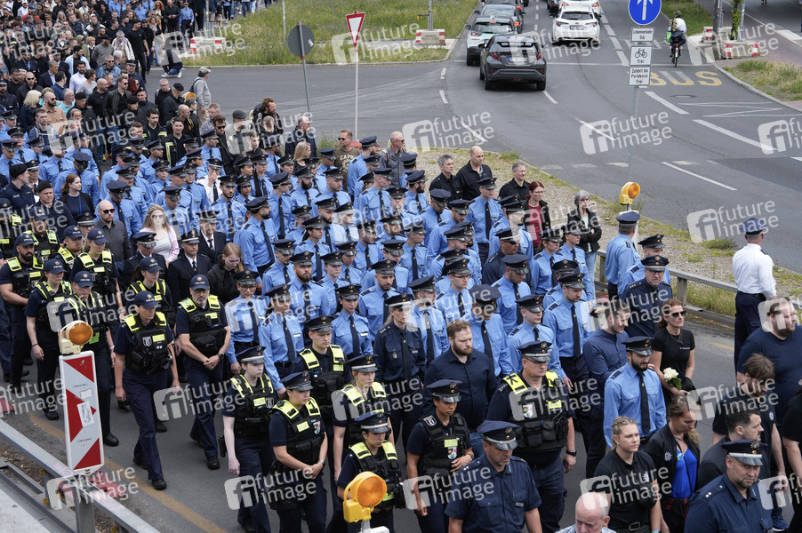 Polizisten in Uniform beim Schweigemarsch für den ermordeten Mannheimer Polizisten Rouven L. vom Potsdamer Platz zur Landesvertretung Baden-Württemberg. Berlin, 07.06.2024