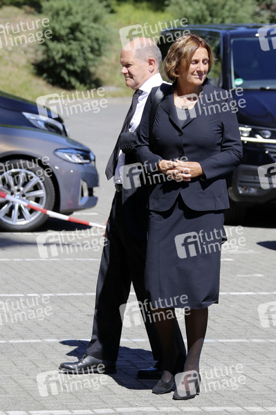 Olaf Scholz mit Ehefrau Britta Ernst bei der Trauerfeier für Uwe Seeler im Volksparkstadion. Hamburg, 10.08.2022
