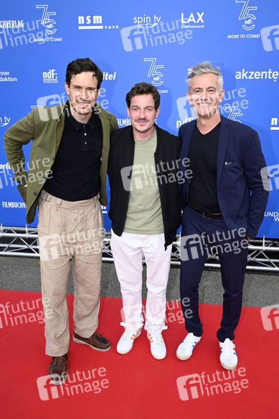 Tobias van Dieken, Markus Brandl und Robert Lohr bei der '75 Jahre ndF: More To Come' Film Party auf der Trabrennbahn Daglfing. München, 29.06.2022