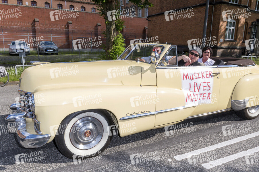 Wayne Morris beim Autokorso unter dem Motto 'EVENTuell nie wieder' der vom Corona-Lockdown betroffenen Veranstaltungsbranche in der Sternschanze. Hamburg, 15.06.2020