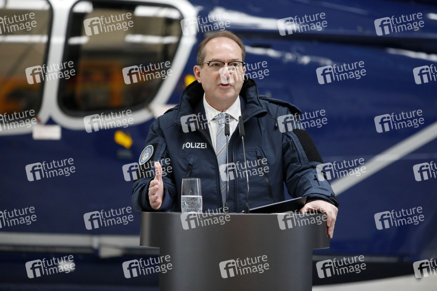 Alexander Dobrindt bei der Indienststellung der Drohnenabwehreinheit der Bundespolizei bei der Bundespolizei-Fliegerstaffel Blumberg. Ahrensfelde, 02.12.2025