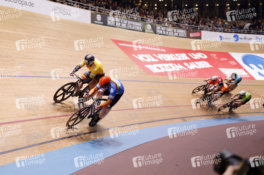 Robert Förstemann (GER) im Duell mit Roy van den Berg (NED) beim Keirin beim Sixdays Weekend 2025 im Velodrom. Berlin, 01.02.2025