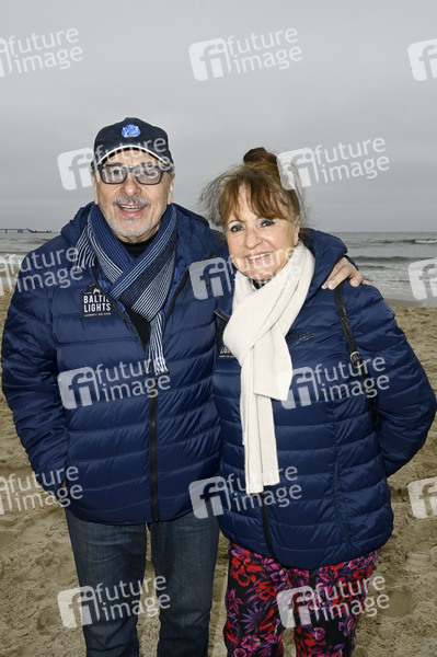 Wolfgang Stumph mit Ehefrau Christine Stumph beim 9. Baltic Lights 2025 Charity-Schlittenhunderennen zu Gunsten der Welthungerhilfe zwischen der Seebrücke Ahlbeck und der Seebrücke Heringsdorf. Heringsdorf, 01.03.2025