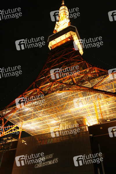 Der 1958 von der Takenaka Corporation fertig gestellte Stahlfachwerkturm ähnelt dem etwas niedrigeren Pariser Eiffelturm, dient als Sendestation für 23 Radio- und Fernsehsignale, Höhe ca. 333m, verfügt über zwei vollständig verglaste Plattformen in 150m und 250m Höhe, ist als Luftfahrthindernis orange und weiß bemalt, Weihnachten, Christmas