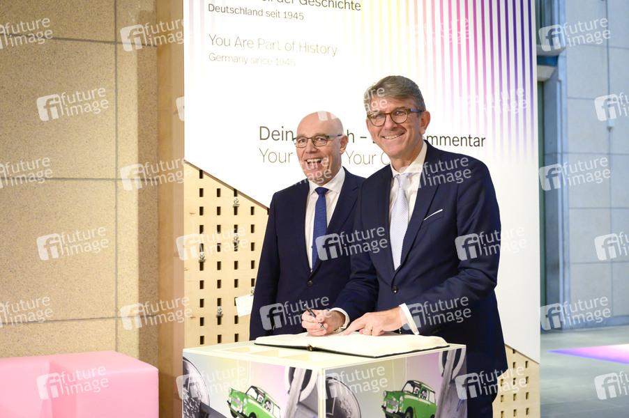 Harald Biermann und Wolfram Weimer bei der Eröffnung der neuen Dauerausstellung 'Du bist Teil der Geschichte. Deutschland seit 1945' im Haus der Geschichte. Bonn, 08.12.2025