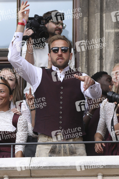 Harry Kane bei der Meisterfeier des FC Bayern München auf dem Balkon des Rathauses am Marienplatz. München, 18.05.2025
