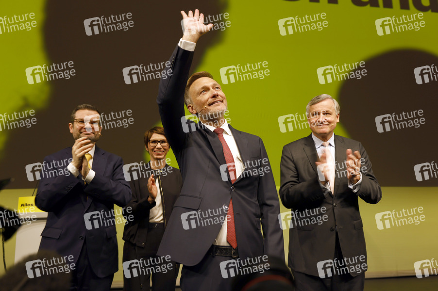 Marco Buschmann, Judith Skudelny, Christian Lindner und Hans-Ulrich Rülke beim FDP Dreikönigstreffen 2025 im Stuttgarter Opernhaus. Stuttgart, 06.01.2025