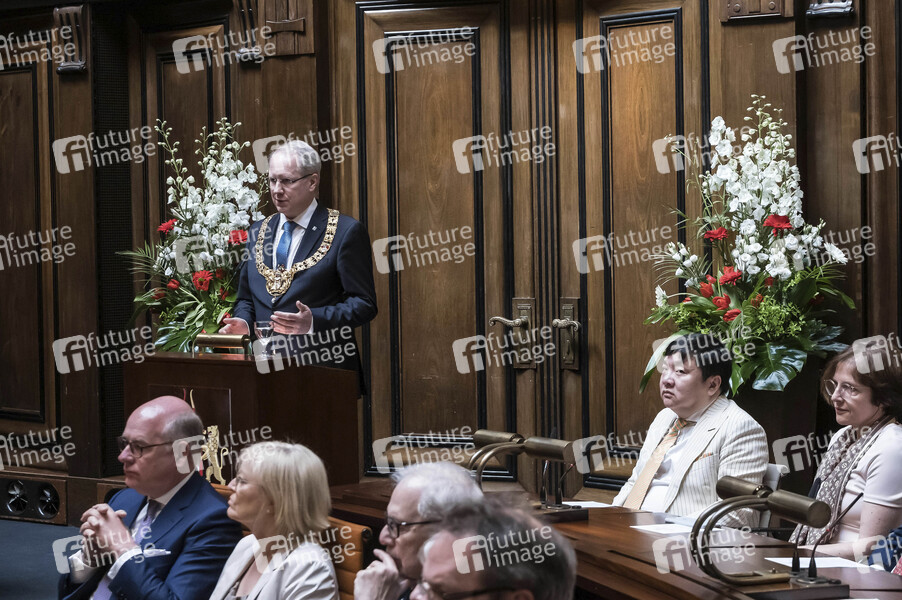 Stefan Schostok beim Empfang zum 75. Geburtstag von Ehrenbürger und Bundeskanzler a.D. Gerhard Schröder im Neuen Rathaus. Hannover, 24.04.2019