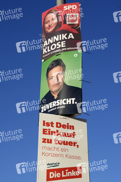 Abstimmung, Kampagne, Kandidat, Kandidaten, Kandidatin, Kandidierende, Bundestagswahl, Bundestagswahlen, Bundestagswahlkampf, Partei, Parteien, Parteienwerbung Plakat, Plakate, Plakatkampagne, Politik, Politiker, Wahl, Wahlen, wählen, Wahlkampagne, Wahlkampf, Wahlkampfveranstaltung, Wahlkandidat, Wahlplakat, Wahlplakate, Wahlwerbung, Symbolfoto, Symbolbild