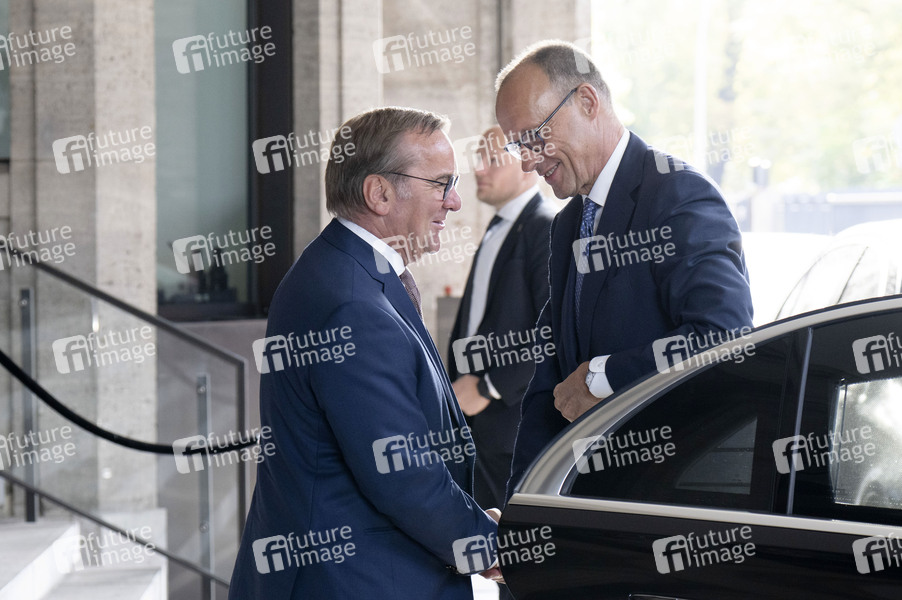 Boris Pistorius und Friedrich Merz bei der Ankunft zur 14. Sitzung des Bundeskabinetts im Bundesministerium der Verteidigung. Berlin, 27.08.2025