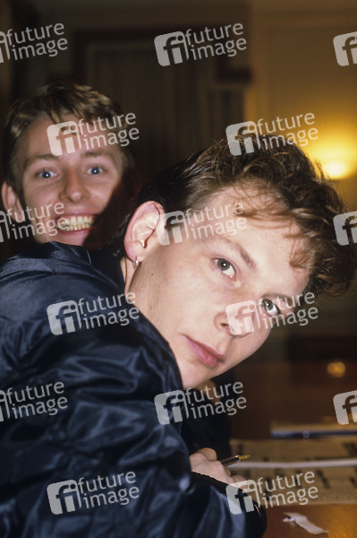 Scott Taylor und Steve Wren von Then Jerico bei einem Pressetermin in einem Hotel. London, 24.03.1987