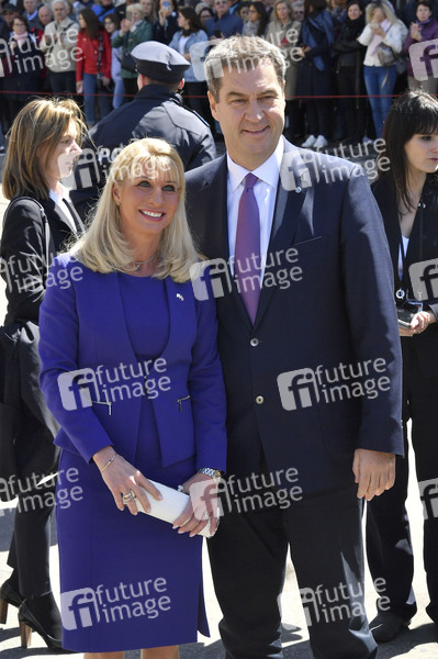 Markus Söder mit Ehefrau Karin Söder bei der Begrüßung der britischen Royals auf dem Max-Joseph-Platz vor der Residenz München. München, 09.05.2019