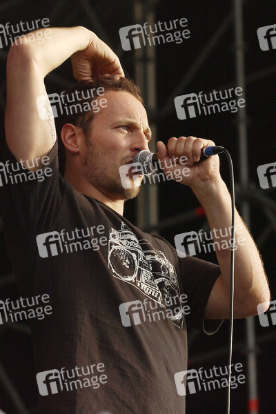 Arnim Teutoburg-Weiß von den Beatsteaks live auf dem 7. Highfield-Festival 2004 am Stausee. Hohenfelden, 13.08.2004