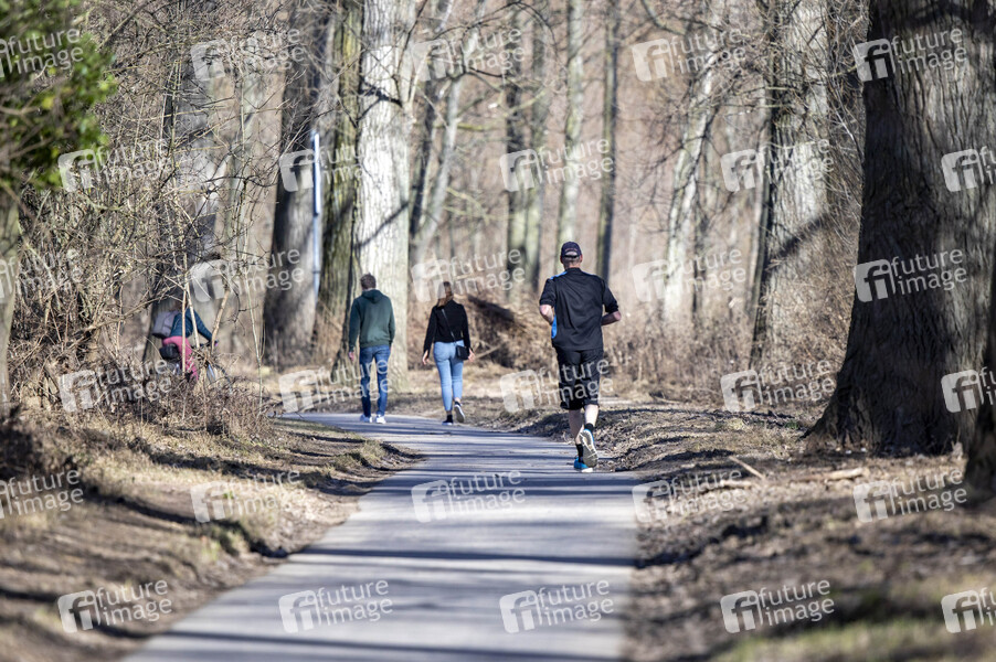 Bewegung, Corona, Coronaschutzregeln, Freizeit, Frühlingstag, Frühlingstag, Lockdown, Menschen, Rhein, Rheinufer, Sonnenschein, Sonnenstrahlen, sonnig, Sonntagnachmittag, Sport, Sporttreiben, Jogger, joggen, Läufer, laufen, Temperaturen, Warme, Wärme, Wochenende, Wolkenlos, Symbolbild, Symbolfoto