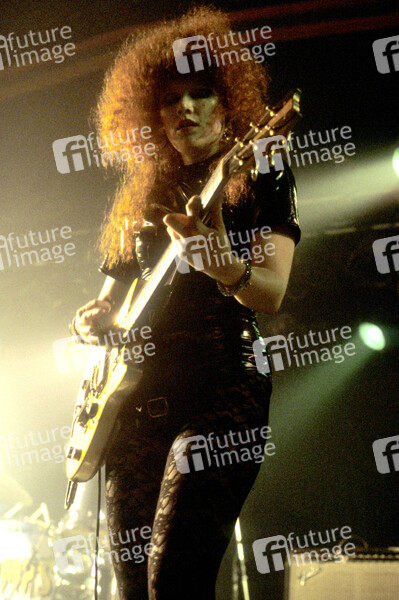 Poison Ivy Rohrschach von The Cramps live in der Brixton Academy. London, 10.04.1984