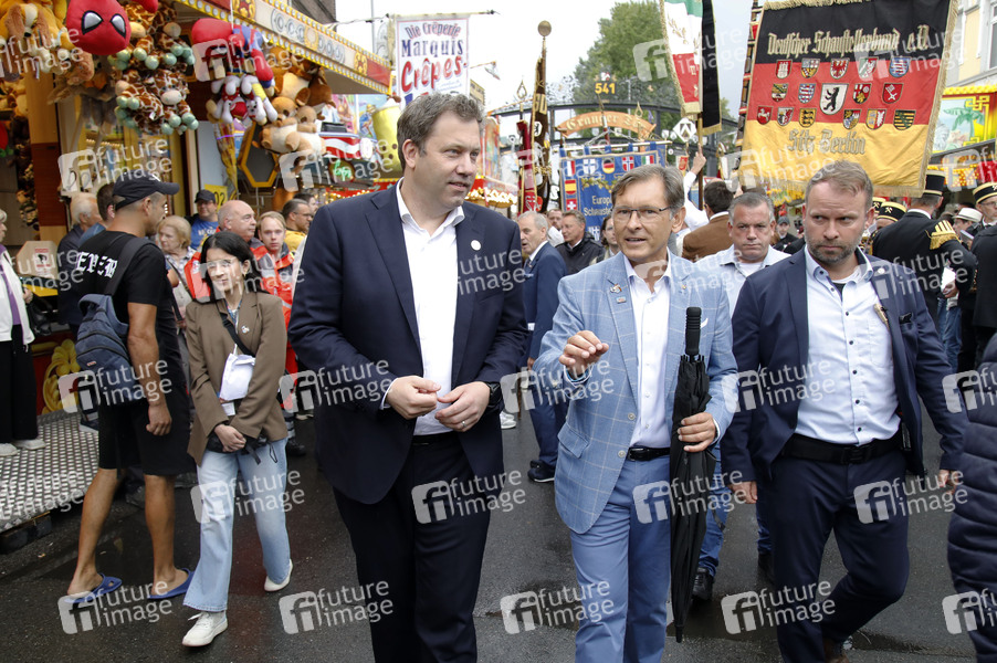 Lars Klingbeil und Frank Dudda bei der Eröffnungsveranstaltung der Cranger Kirmes in der Cranger Festhalle. Herne, 01.08.2025