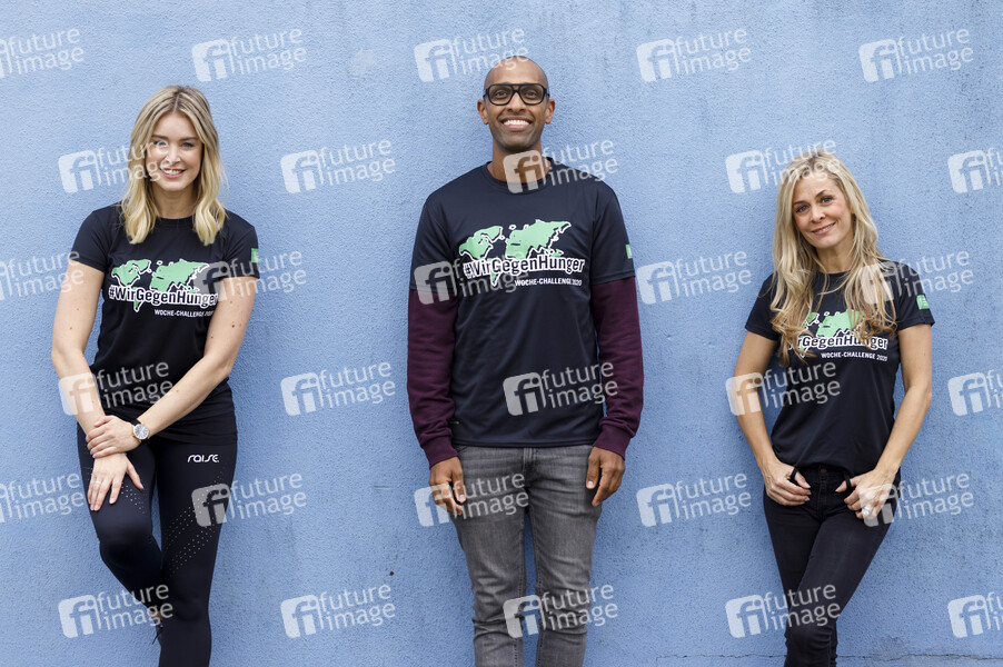 Nina Ensmann, Amiaz Habtu und Tanja Lanäus beim Fototermin zur sportichen '#WocheChallenge' im Deutschen Sport & Olympia Museum. Unter dem Motto 'Wir können was bewegen!' ruft die Welthungerhilfe zu dieser Challenge auf und bittet um Spenden für eine Welt ohne Hunger. Köln, 07.10.2020