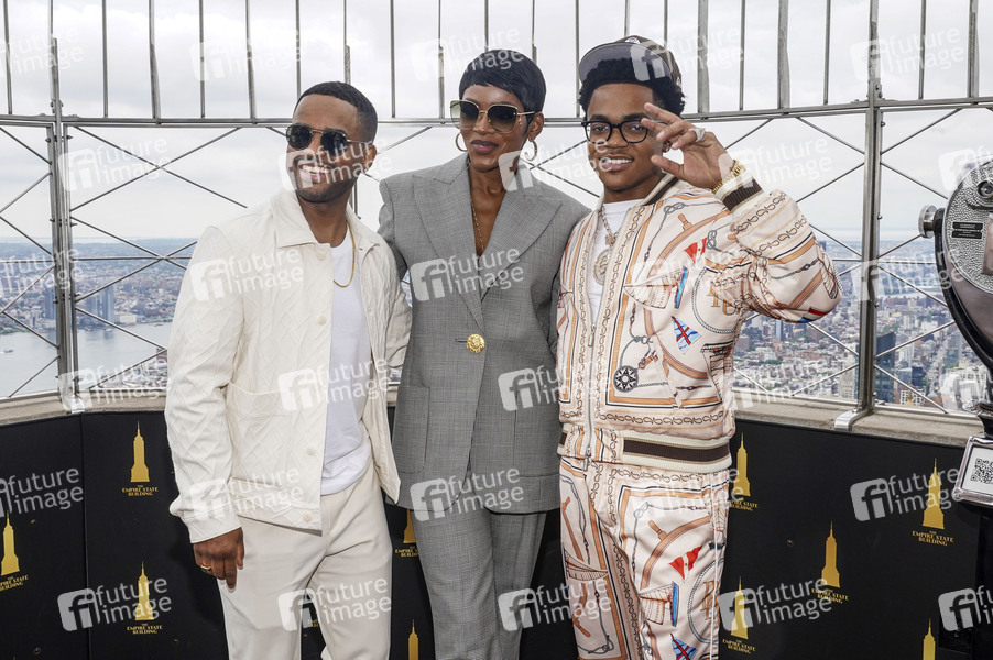 Larenz Tate, Caroline Chikezie und Michael Rainey Jr. beim Pressetermin zur finalen 4. Staffel der TV-Serie 'Power Book II: Ghost', dem Black Music Month und dem 10. Jahrestag der TV-Serie 'Power' auf dem Empire State Buildung. New York, 06.06.2024