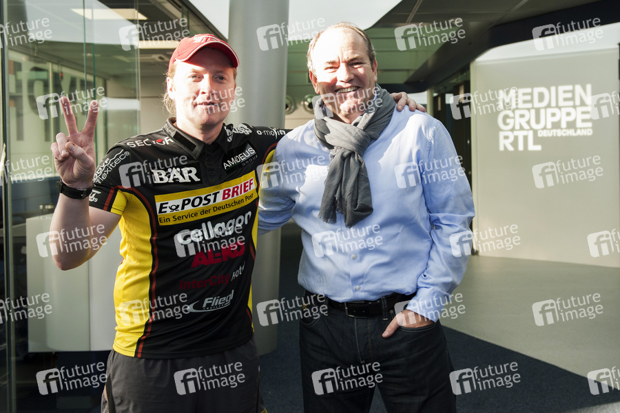 Pressetermin zum Guinness Weltrekord-Versuch. Joey Kelly will parallel zum RTL-Spendenmarathon eine herunterfahrende Rolltreppe 24 Stunden lang hochsteigen im RTL-Gebäude, Köln