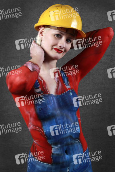 Bodypainting, Erotik, Frau, Mädchen, nackt, drinnen, weiblich, Körperkunst, Kunst, Malerei, Bauhelm, erotic, woman, girl, nude, indoor, female, body art, body painting