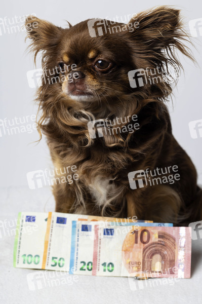 Chihuahua, Tier, Hund, Dog, Tierliebe, kleinste Hunderasse der Welt, Haustier, Rassehund, Hundehalter, Hundebesitzer, Banknoten, Geldscheine, Euro, EUR, €, Bargeld, Steuer, Gemeindesteuer, Aufwandsteuer, Jahressteuer, Steuermarke, Symbolbild, Themenbild