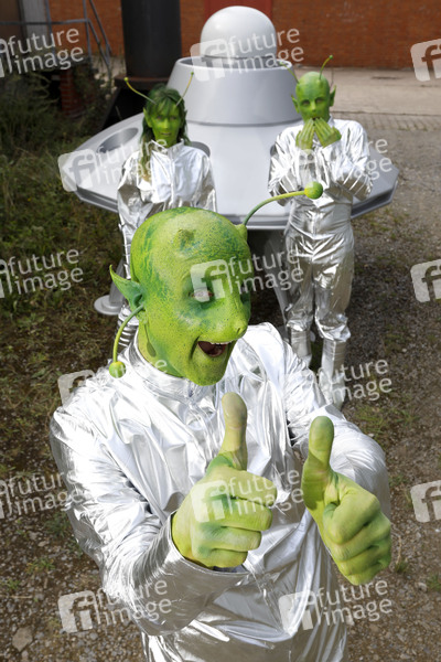 Bodypainting, Body-Painting, Cosplay, Cosplayer, Körperkunst, Körperfarben, Farbe, Bemalung, Kunst, Make-up, Latexapplikationen, Maskenbildnerei, unbekanntes Flugobjekt, Außerirdische, fliegende Untertasse, Raumschiff, fremde Wesen, Landung, Invasion, Science Fiction, body painting, body art, latex applications, unknown flying object, spacecraft, flying saucer, alien, strangers, landing, colors